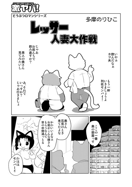 御存じどうぶつロマンシリーズ。今回は悪いレッサーパンダが夫が酔いつぶれた隙に若妻を犯していく。